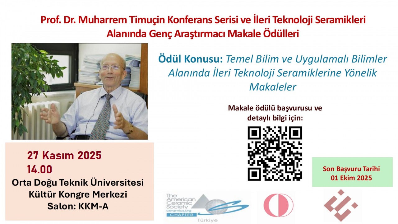 Amerikan Seramik Derneği (ACerS) Türkiye Şubesi, ileri teknoloji seramikleri alanının öncü ismi Prof. Dr. Muharrem Timuçin’in anısını yaşatmak amacıyla yeni bir konferans serisi ve Genç Araştırmacı...